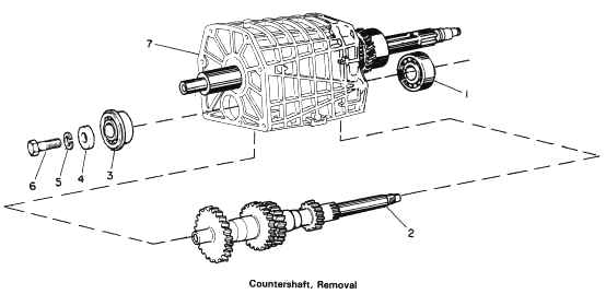 b. Using a soft mallet, tap on output end of countershaft (2)