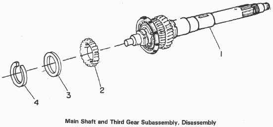 Disassemble Main Shaft and Third Gear Subassembly a. Place subassembly in press. Do not