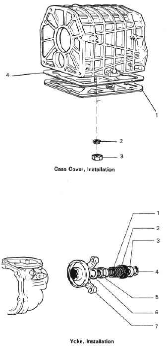 | 1. Spring 2. Seal 3. Spacer 4. Snap ring 5. Nut 6. Washer 7. Yoke |